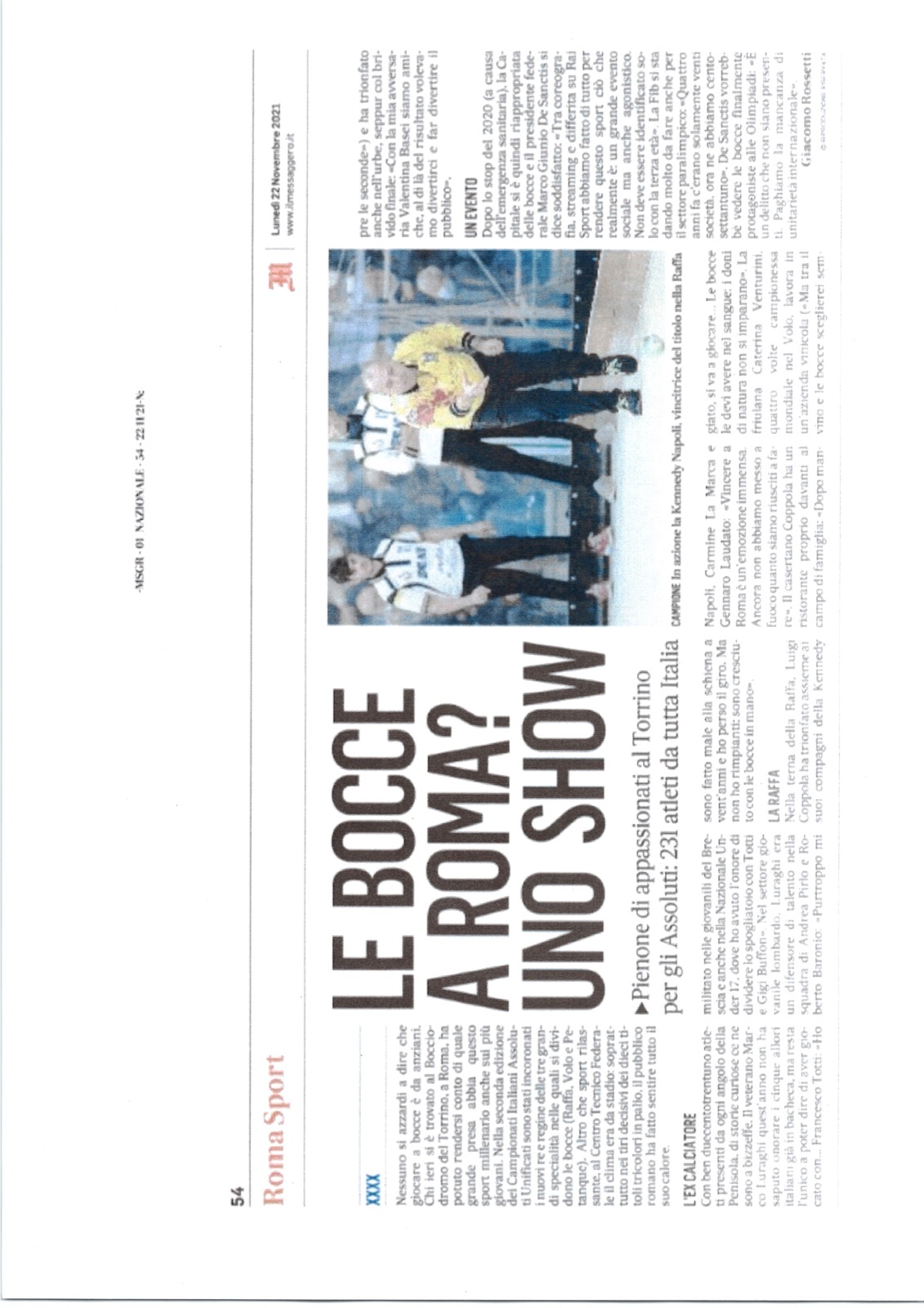 Espandi l'inventario Genera il QR Code della scheda Copia il permalink Le bocce a Roma? Uno show Tipologia Documento Data cronica 22/11/2021 Rassegna StampaArchivioDocumento Tipologia pubblicazioni quotidiani inserzioni pagine webContenuto Campionato Italiano AssolutiLink esterni https://www.federbocce.it/multimedia/rassegna-stampa/il-messaggero/2021-18/4113-il-messaggero-22-11-2021/file.html Serie