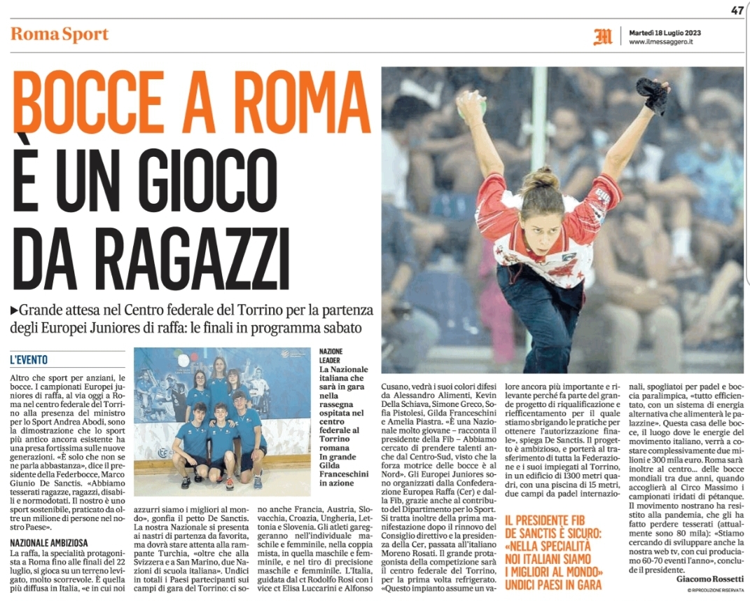 Espandi l'inventario Genera il QR Code della scheda Copia il permalink Bocce a Roma è un gioco da ragazzi Tipologia Documento Data cronica 18/07/2023 Rassegna StampaArchivioDocumento Tipologia pubblicazioni quotidiani inserzioni pagine webContenuto Europei Juniores RaffaLink esterni https://www.federbocce.it/multimedia/rassegna-stampa/il-messaggero/2023-20/4956-il-messaggero-18-07-2023/file.html Serie
