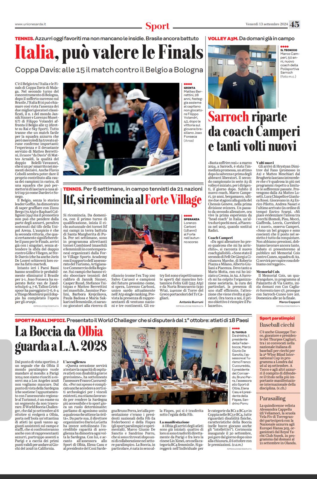 Espandi l'inventario Genera il QR Code della scheda Copia il permalink L'Unione Sarda 13/09/2024 Tipologia Documento Data cronica 13/09/2024 Rassegna StampaArchivioDocumento Tipologia pubblicazioni quotidiani inserzioni pagine webContenuto L'Unione Sarda 13/09/2024 Link esterni https://www.federbocce.it/multimedia/rassegna-stampa/altre-testate/5744-l-unione-sarda-13-09-2024/file.html Serie