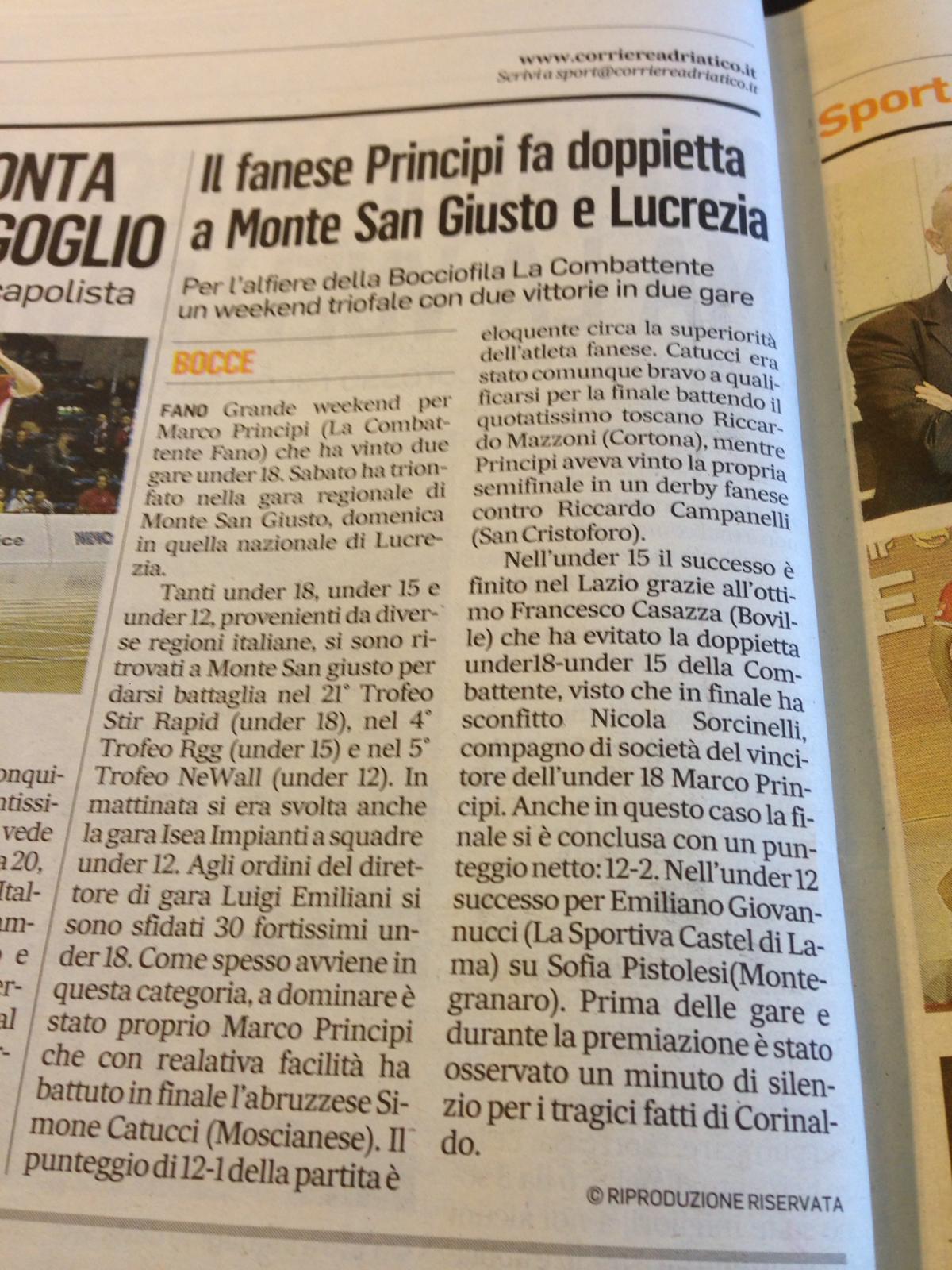 Corriere Adriatico Il fanese Principi fa doppietta a Monte San giusto e Lucrezia