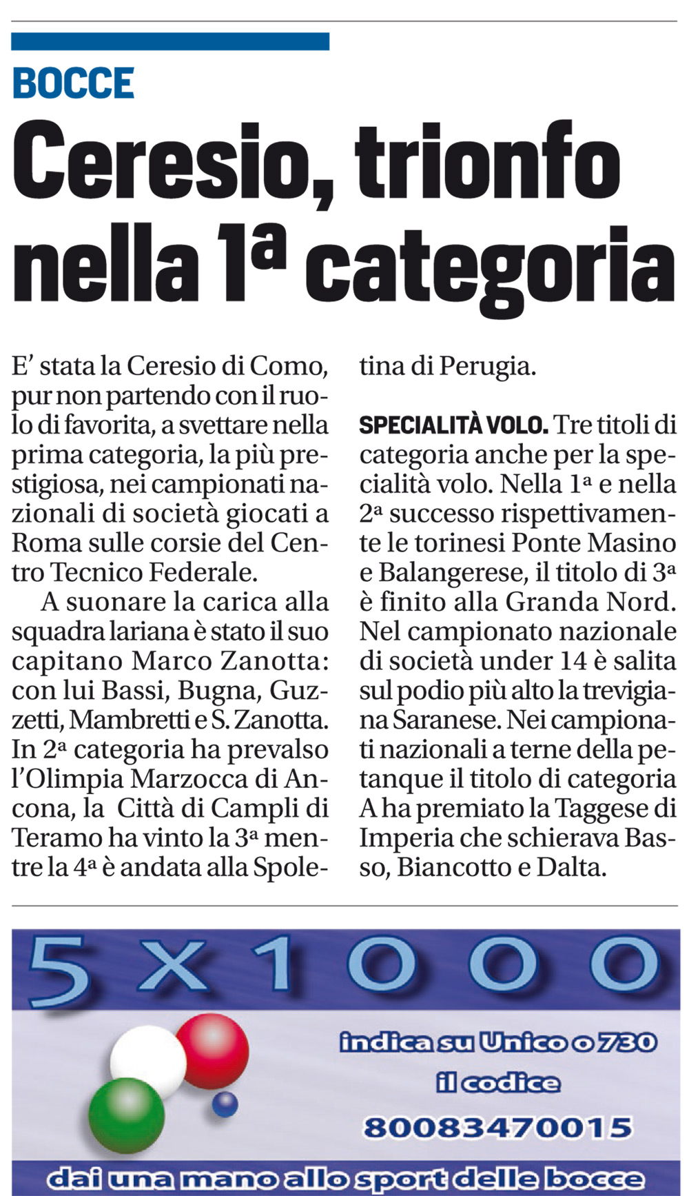 Espandi l'inventario Genera il QR Code della scheda Copia il permalink 07-lug-02 Tipologia Documento Data cronica 07/07/2014 Rassegna StampaArchivioDocumento Tipologia pubblicazioni quotidiani inserzioni pagine webContenuto serie A raffa campionati italiani voloLink esterni https://www.federbocce.it/multimedia/rassegna-stampa/corriere-dello-sport/2014-3/885-07-luglio-2-6/file.html Serie