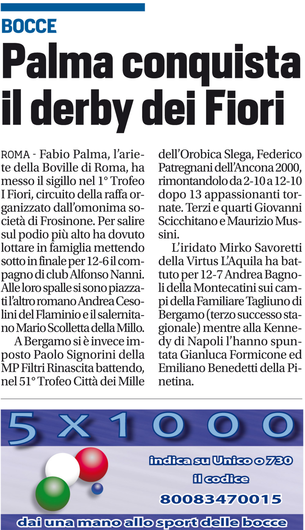 Espandi l'inventario Genera il QR Code della scheda Copia il permalink 06-giu-01 Tipologia Documento Data cronica 06/06/2014 Rassegna StampaArchivioDocumento Tipologia pubblicazioni quotidiani inserzioni pagine webContenuto raffa circuito FIBLink esterni https://www.federbocce.it/multimedia/rassegna-stampa/corriere-dello-sport/2014-3/883-06-giugno-1-7/file.html Serie