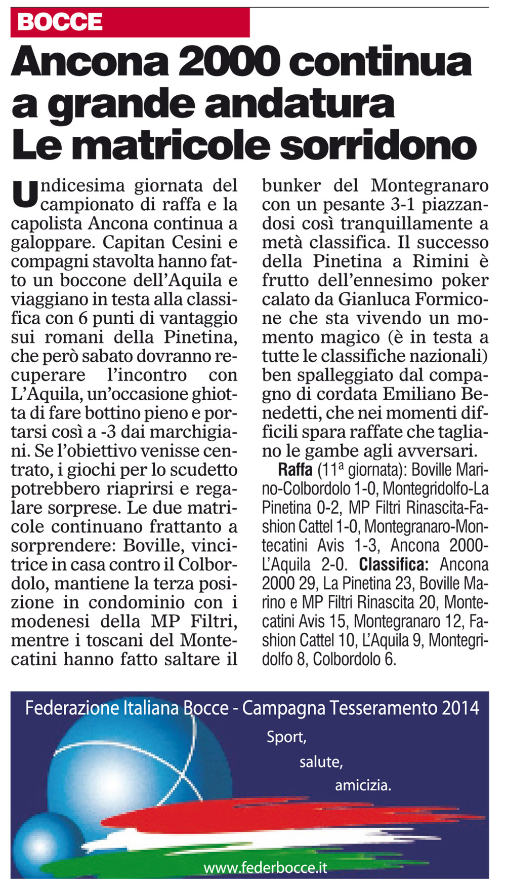 Espandi l'inventario Genera il QR Code della scheda Copia il permalink 02-feb-04 Tipologia Documento Data cronica 02/02/2014 Rassegna StampaArchivioDocumento Tipologia pubblicazioni quotidiani inserzioni pagine webContenuto raffa campionato serie ALink esterni https://www.federbocce.it/multimedia/rassegna-stampa/corriere-dello-sport/2014-3/881-02-febbraio-4-5/file.html Serie