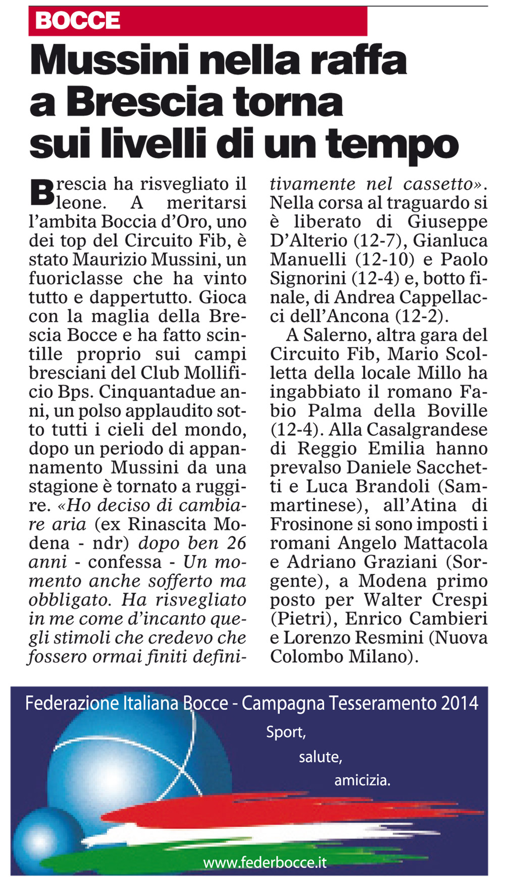 Espandi l'inventario Genera il QR Code della scheda Copia il permalink 02-feb-01 Tipologia Documento Data cronica 02/02/2014 Rassegna StampaArchivioDocumento Tipologia pubblicazioni quotidiani inserzioni pagine webContenuto circuito FIB raffaLink esterni https://www.federbocce.it/multimedia/rassegna-stampa/corriere-dello-sport/2014-3/875-02-febbraio-1-7/file.html Serie