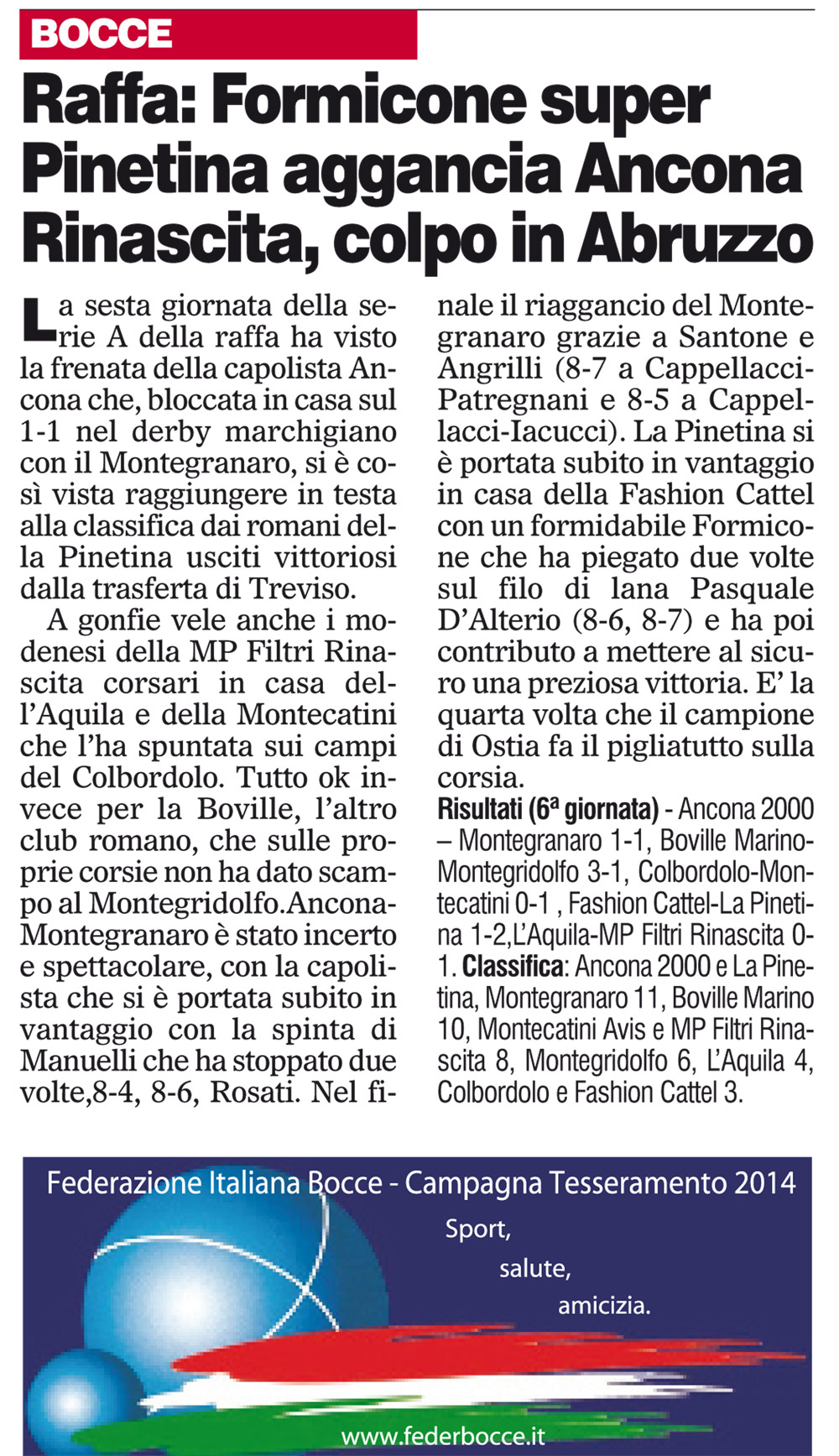 Espandi l'inventario Genera il QR Code della scheda Copia il permalink 01-gen-02 Tipologia Documento Data cronica 01/01/2014 Rassegna StampaArchivioDocumento Tipologia pubblicazioni quotidiani inserzioni pagine webContenuto raffa serie ALink esterni https://www.federbocce.it/multimedia/rassegna-stampa/corriere-dello-sport/2014-3/859-01-gennaio-2-6/file.html Serie