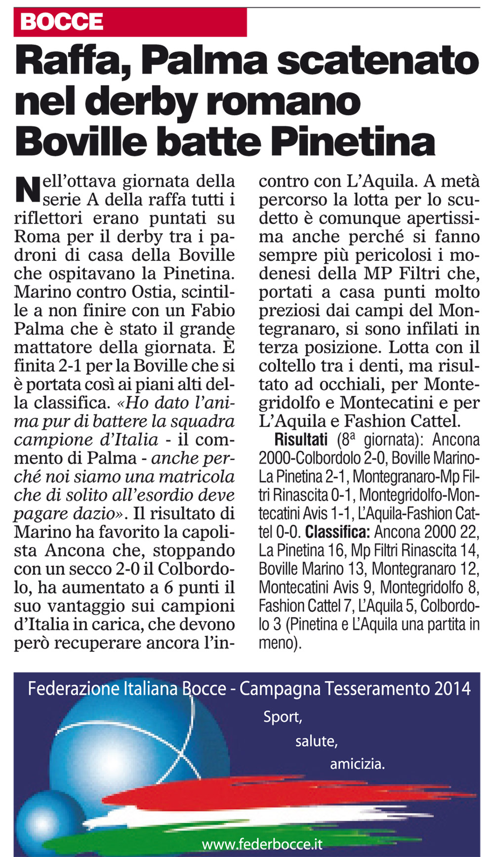 Espandi l'inventario Genera il QR Code della scheda Copia il permalink 01-gen-04 Tipologia Documento Data cronica 01/01/2014 Rassegna StampaArchivioDocumento Tipologia pubblicazioni quotidiani inserzioni pagine webContenuto raffa serie ALink esterni https://www.federbocce.it/multimedia/rassegna-stampa/corriere-dello-sport/2014-3/858-01-gennaio-4-4/file.html Serie