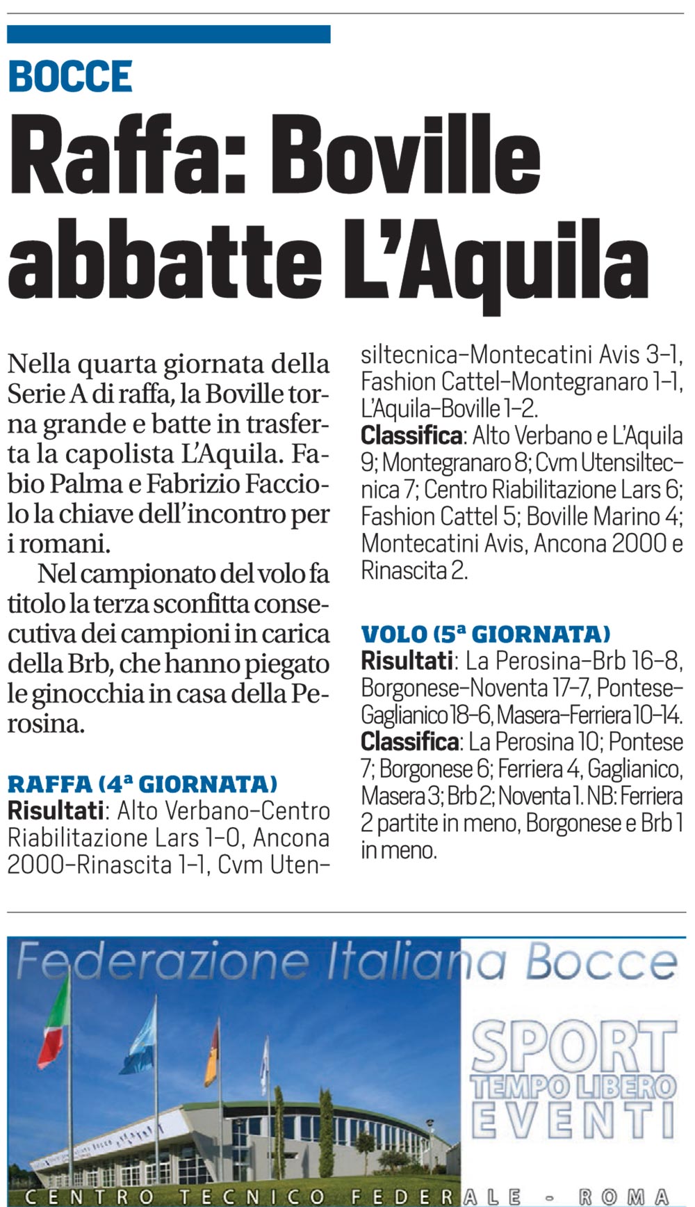 Espandi l'inventario Genera il QR Code della scheda Copia il permalink 12-dic-02 Tipologia Documento Data cronica 12/12/2015 Rassegna StampaArchivioDocumento Tipologia pubblicazioni quotidiani inserzioni pagine webContenuto raffa volo campionati italianiLink esterni https://www.federbocce.it/multimedia/rassegna-stampa/corriere-dello-sport/2015-3/945-12-dicembre-2-7/file.html Serie