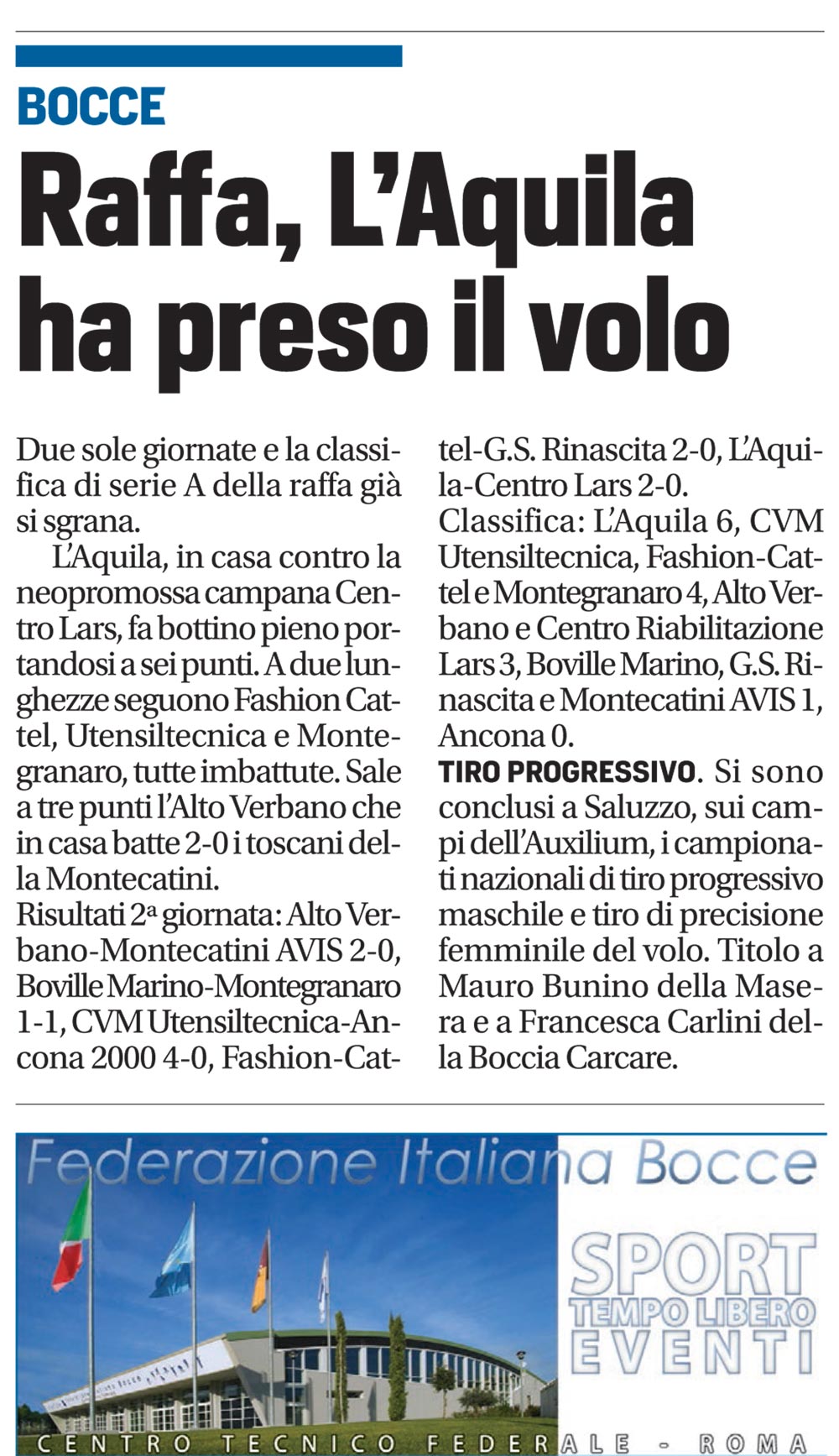 Espandi l'inventario Genera il QR Code della scheda Copia il permalink 11-nov-02 Tipologia Documento Data cronica 11/11/2015 Rassegna StampaArchivioDocumento Tipologia pubblicazioni quotidiani inserzioni pagine webContenuto raffa coppa italia seniorLink esterni https://www.federbocce.it/multimedia/rassegna-stampa/corriere-dello-sport/2015-3/943-11-novembre-2-7/file.html Serie