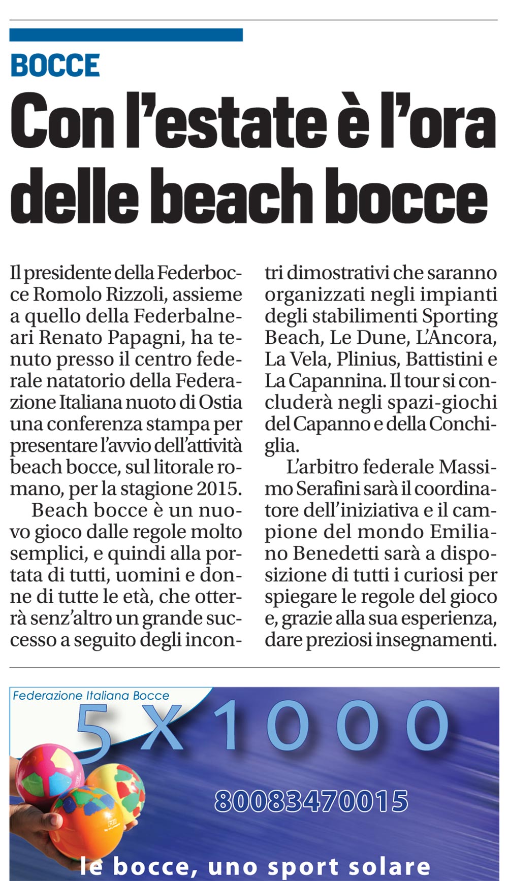 Espandi l'inventario Genera il QR Code della scheda Copia il permalink 07-lug-02 Tipologia Documento Data cronica 07/07/2015 Rassegna StampaArchivioDocumento Tipologia pubblicazioni quotidiani inserzioni pagine webContenuto beach bocceLink esterni https://www.federbocce.it/multimedia/rassegna-stampa/corriere-dello-sport/2015-3/928-07-luglio-2-7/file.html Serie