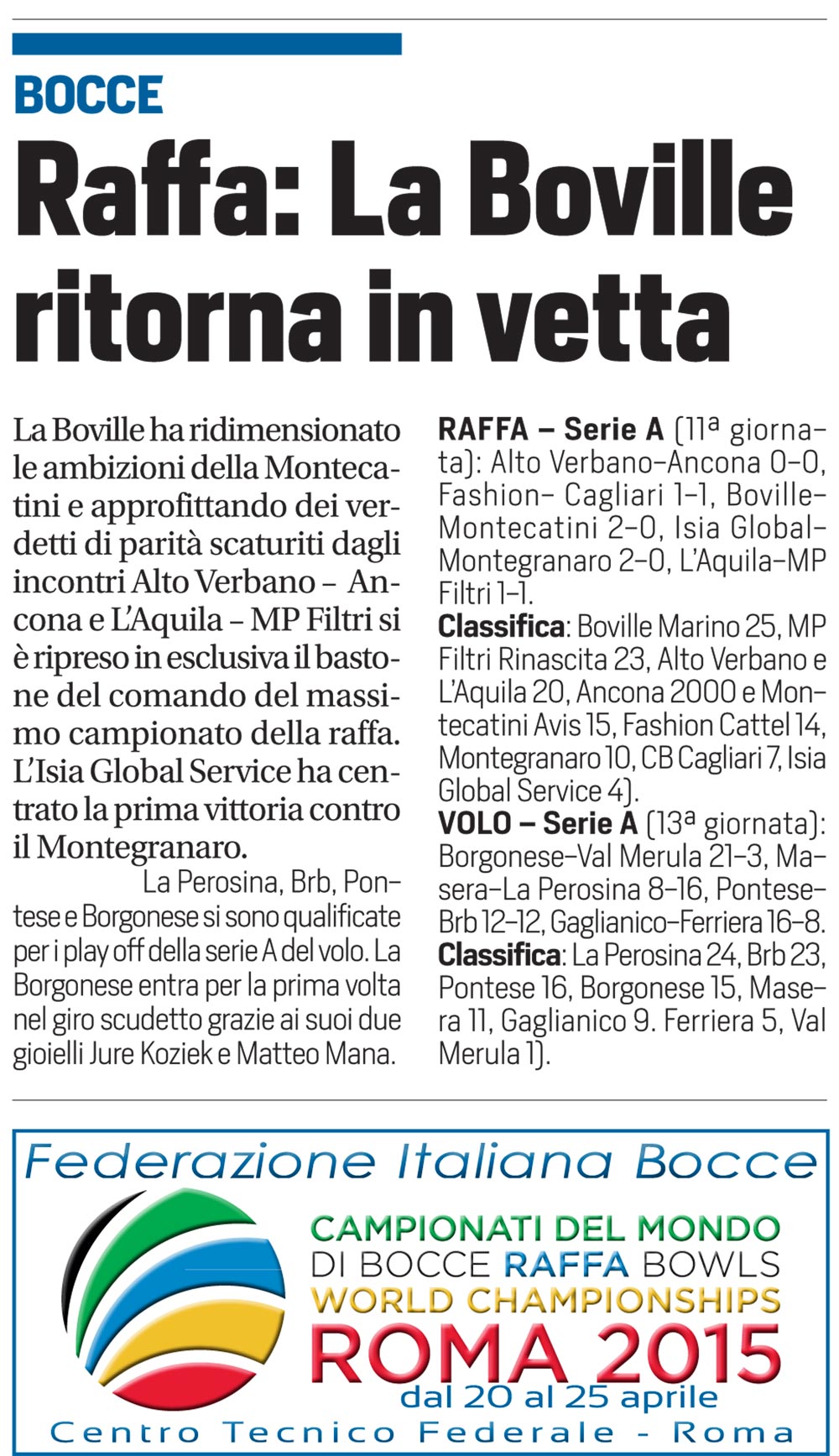 Espandi l'inventario Genera il QR Code della scheda Copia il permalink 03-mar-01 Tipologia Documento Data cronica 03/03/2015 Rassegna StampaArchivioDocumento Tipologia pubblicazioni quotidiani inserzioni pagine webContenuto serie A raffaLink esterni https://www.federbocce.it/multimedia/rassegna-stampa/corriere-dello-sport/2015-3/916-03-marzo-1-8/file.html Serie