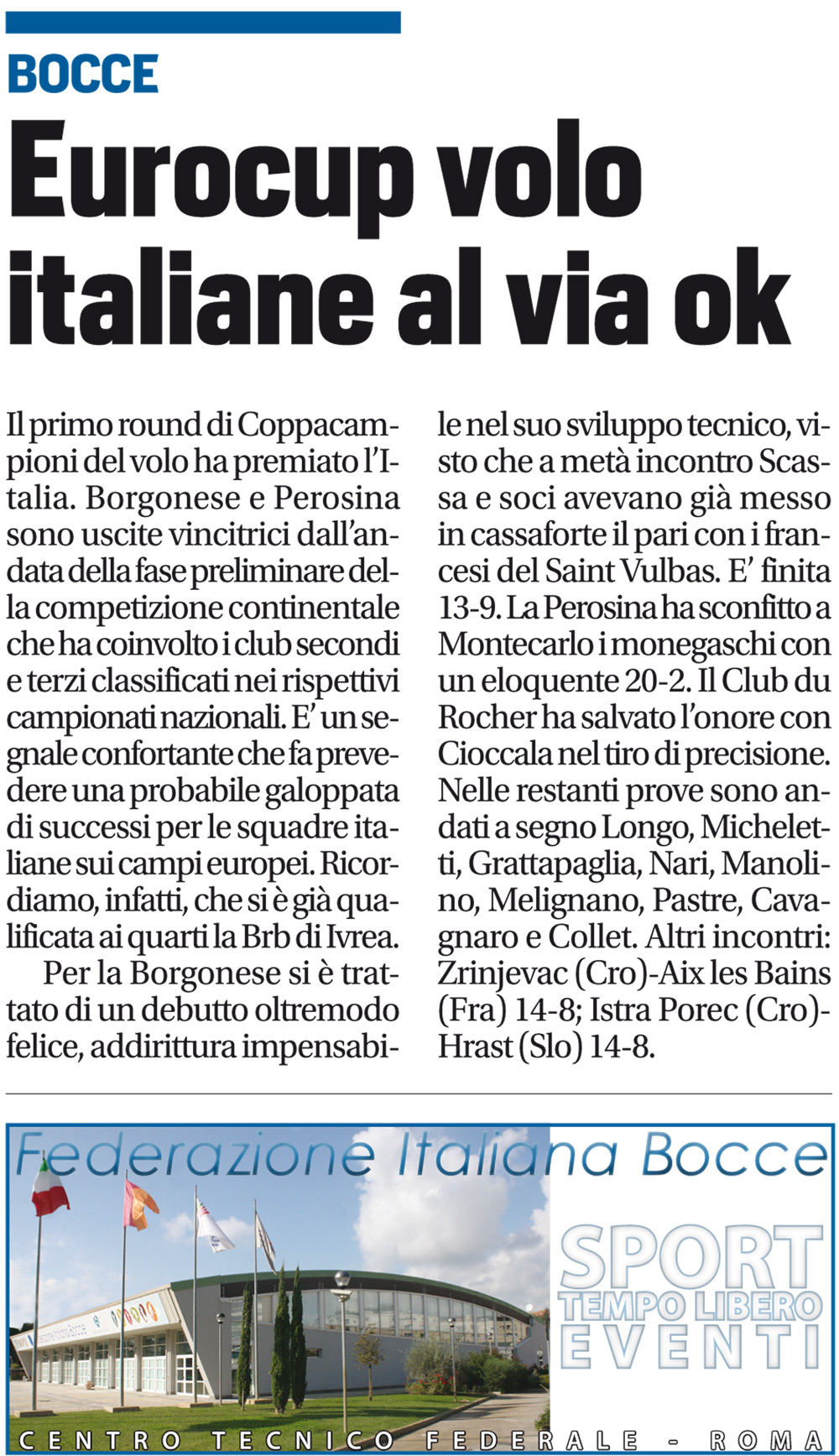 Espandi l'inventario Genera il QR Code della scheda Copia il permalink 04-apr-05 Tipologia Documento Data cronica 04/04/2015 Rassegna StampaArchivioDocumento Tipologia pubblicazioni quotidiani inserzioni pagine webContenuto coppa campioni voloLink esterni https://www.federbocce.it/multimedia/rassegna-stampa/corriere-dello-sport/2015-3/900-04-aprile-5-1/file.html Serie