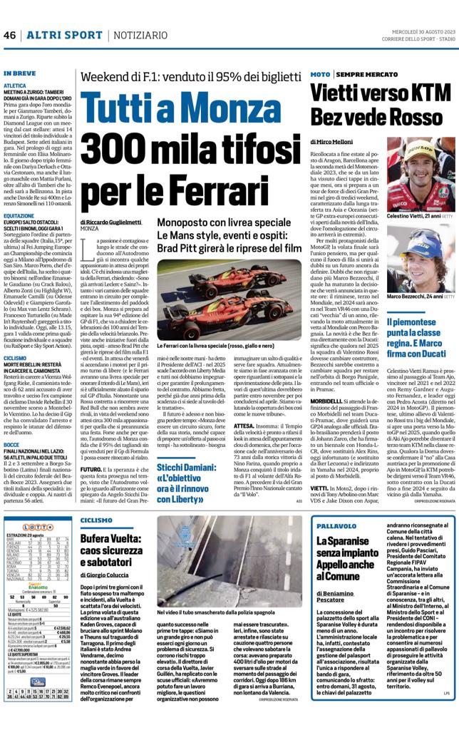 Espandi l'inventario Genera il QR Code della scheda Copia il permalink Il Corriere dello Sport 30/08/2023 Tipologia Documento Data cronica 30/08/2023 Rassegna StampaArchivioDocumento Tipologia pubblicazioni quotidiani inserzioni pagine webContenuto finali nazionali lazioLink esterni https://www.federbocce.it/multimedia/rassegna-stampa/corriere-dello-sport/2023-18/5012-il-corriere-dello-sport-30-08-2023/file.html Serie